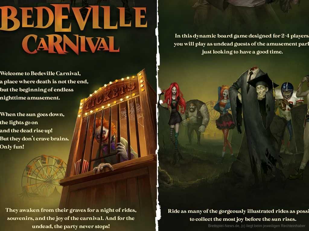 Ganz getreu dem Motto "Horror zieht immer" entschied sich das Team von Loodo Ninja ihr neues kompetitives Brettspiel in dem Setting eintauchen zu lassen. In dem Spiel für 2-4 Horrorfans schlüpfen die Spielerinnen und Spieler in die Rolle von sechs unterschiedlichen Untoten, die auf einem Jahrmarkt noch einmal die Fetzen fliegen lassen wollen. Eine Partie soll dabei 45 Minuten dauern. Trotz des eher makabren Themas ist das Spiel für alle ab 12 Jahren. Das liegt vor allem an der Selbstironie, in dem auch die Kampagne auf Gamefound gehalten ist.