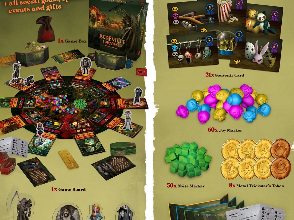 Mechanisch scheint "Bedeville Carnival" eine Art Ressourcen-Management Spiel zu sein, bei dem unterschiedliche Orts- und Karteneffekte die Gewisse Würze geben. Ein einfaches Bewegungssystem und die Vermeidung des Totengräbers Karl sollen für weitere Spieltiefe sorgen.
