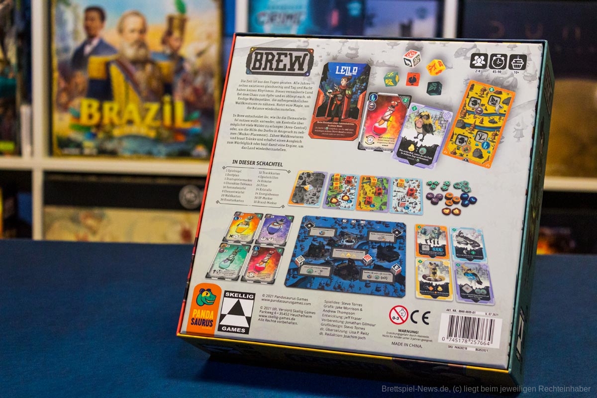 „Brew“ richtet sich an 2-4 Personen ab 10 Jahren. Die Spielzeit beträgt 45-90 Minuten. Der UVP des Spiels liegt bei 36,90 €.