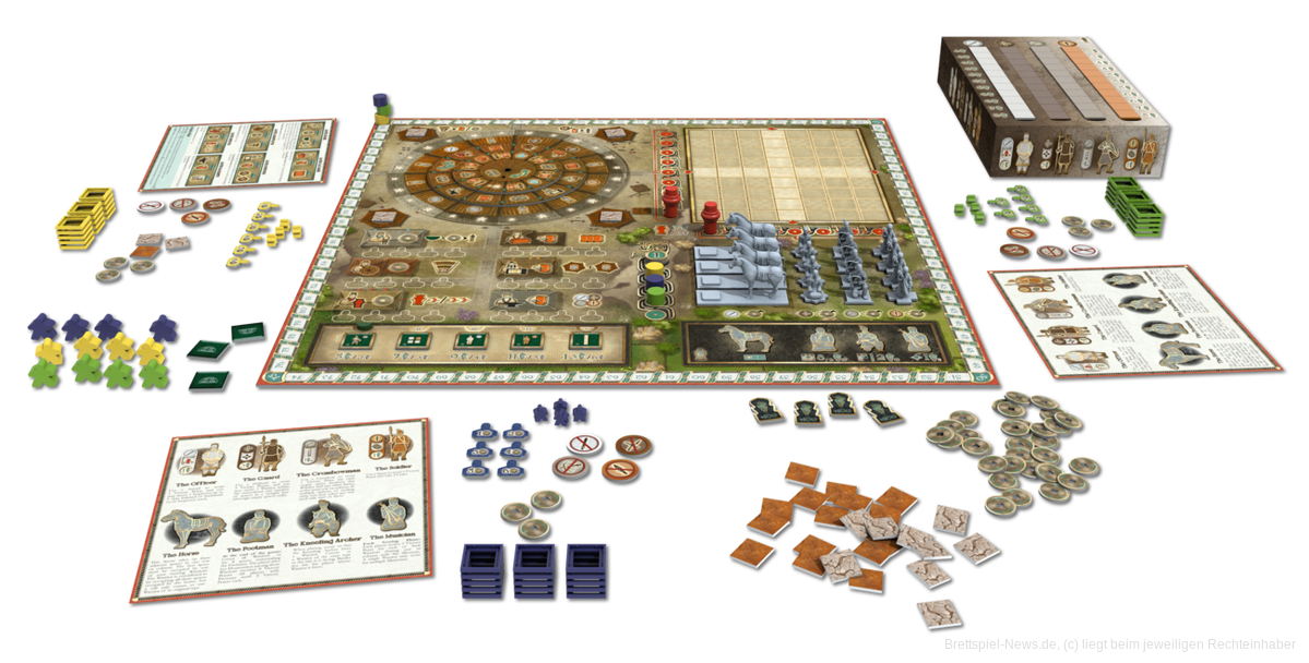 In dem Worker Placement-Spiel mit Miniaturen von Przemyslaw Fornal und Adam Kwapinski (Nemesis, Lords of Hellas) müssen 1-4 Personen die eindrucksvolle Terracotta-Armee erbauen, die dem verstorbenen ersten chinesischen Kaiser Qin Shihuangdi im Jenseits dienen sollen. Die Illustrationen stammen von Aleksander Zawada (Tekhenu, Tawantinsuyu) sowie Zuzanna Kolakowska und die Spielzeit soll etwa 90-120 Minuten betragen. Den Solo-Modus hat Dávid Turczi entwickelt.