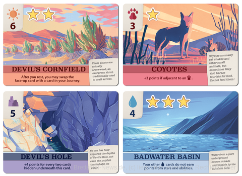 Roadtrip ins Ungewisse! Sengende Hitze, unwegsames Gelände, gefährliche Tiere: viele Abenteuer und Gefahren lauern im Death Valley. Bei diesem Aufbauspiel planen die Spielerinnen und Spieler ab 8 Jahren mit Wüstenkarten ihre eigene Reise und sammeln Erinnerungen in ihrem Album. Dabei sammeln sie Punkte, besondere Fähigkeiten und interessante Fakten über das Death Valley. Auf jeder Karte steht zudem eine Gefahr, die die eigenen Entscheidungen beeinflusst und eventuell zum Abbruch der Reise führt. Die richtige Taktik, Glück und Mut zum Risiko entscheiden über den Ausgang des Spiels.