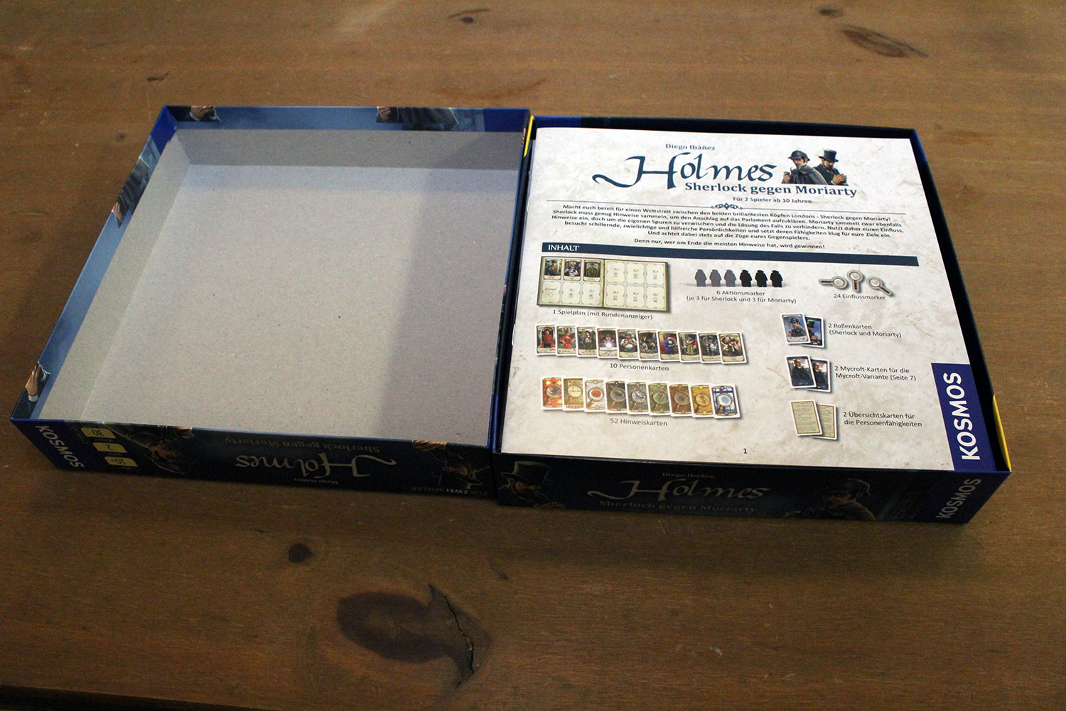 Das Zweispielerspiel “Holmes” befindet sich auf dem Weg in den Handel und brettspiel-news.de liegt bereits eine Kopie vor. Wir haben es ausgepackt und zeigen das Spielmaterial. Einige Partien wurden schon gespielt, so dass bald ein Test folgen wird.