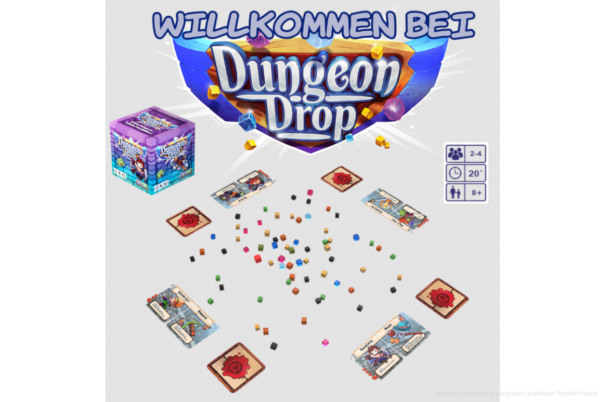 2-4 Personen ab 8 Jahren streiten sich in „Dungeon Drop“ um die besten Schätze. Die Spieldauer liegt bei 20 Minuten.