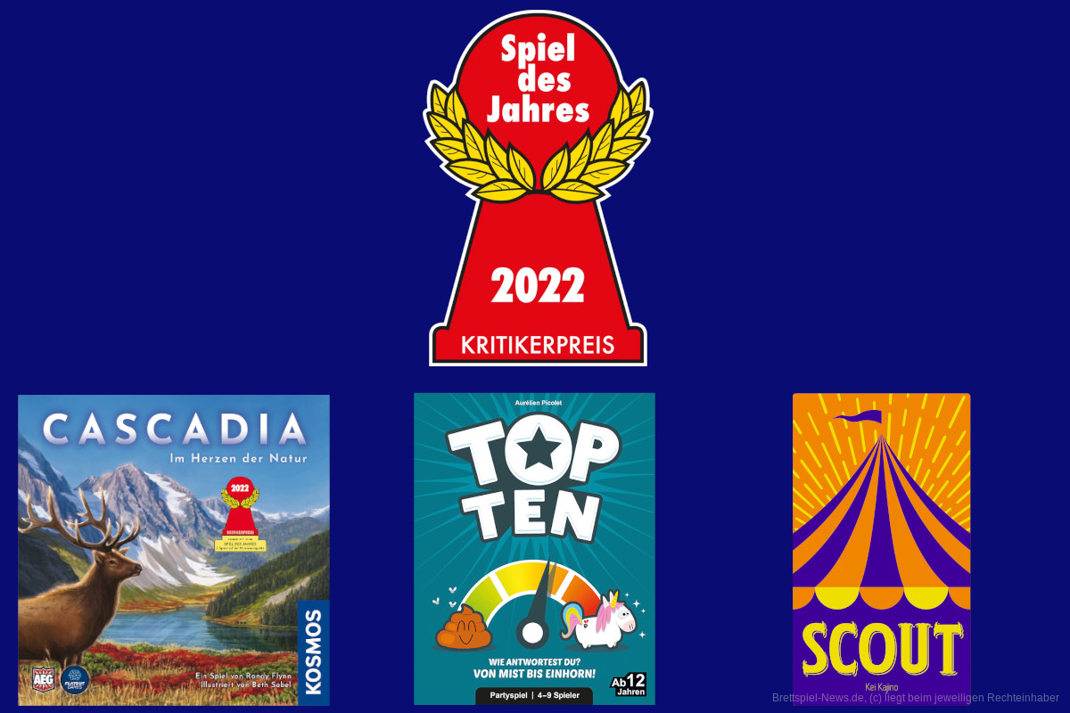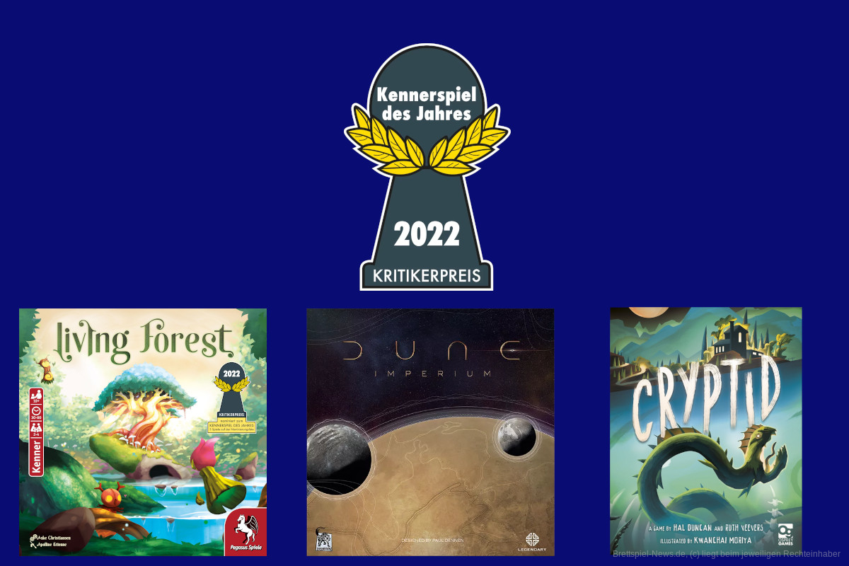 Der Verein SPIEL DES JAHRES hat heute Abend die Preisträger für die Preise SPIEL DES JAHRES und KENNERSPIEL DES JAHRES 2022 verliehen. CASCADIA von Randy Flynn wurde Spiel des Jahres und LIVING FOREST von Aske Christiansen wurde Kennerspiel des Jahres. Die Verleihung kann nachträglich unter anderem auf Youtube angeschaut werden.