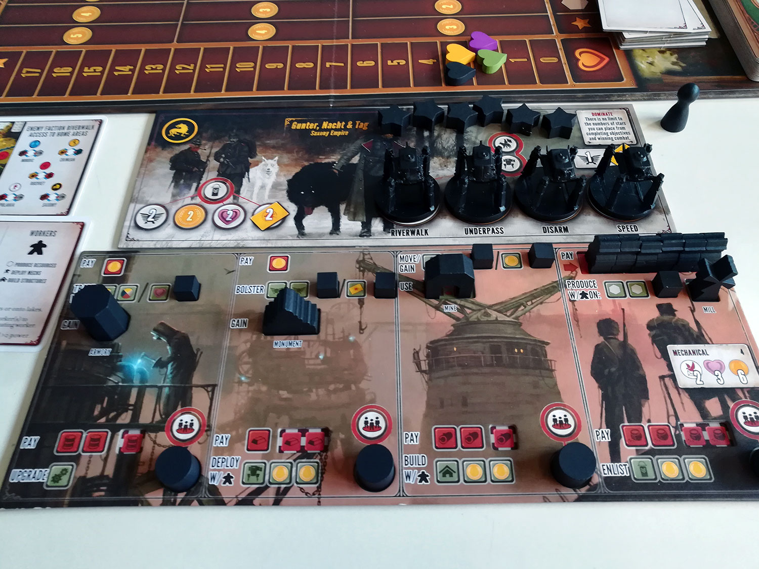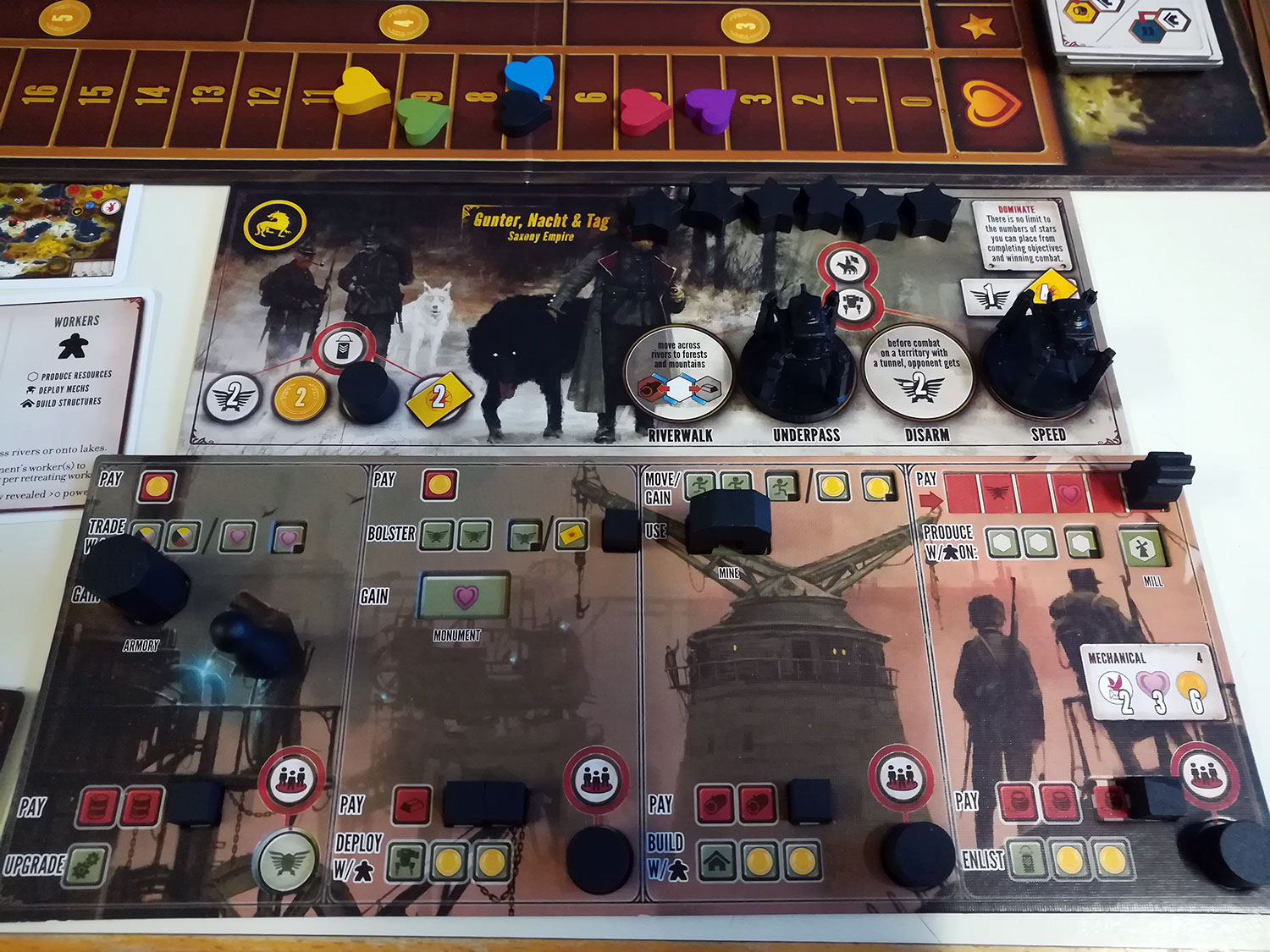 Toll ist, dass sich die einzelnen Fraktionen unterschiedlich spielen und unterschiedliche Schwerpunkte haben. Die in der Erweiterung enthaltenen Fraktionen spielen sich dann noch mal deutlicher anders. Es gibt verschiedene taktische Möglichkeiten im Spiel Punkte zu sammeln. Zudem entwickelt man sich ständig weiter und man partizipiert auch von seinen Nachbarn.