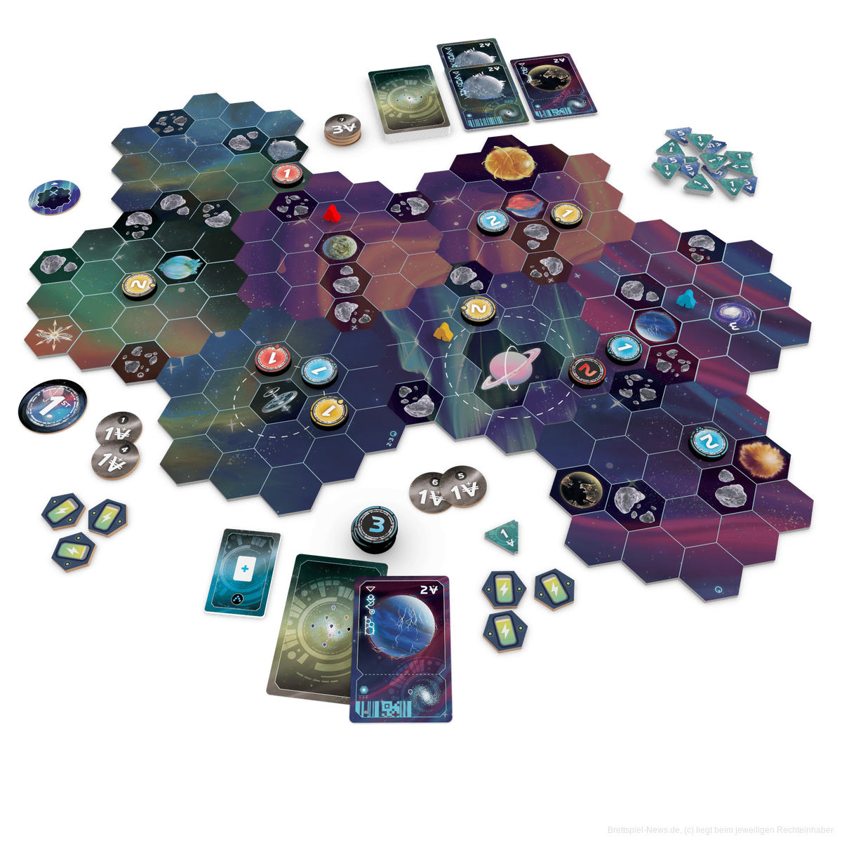In dem Transport- und Weltraum Erkundungs-Spiel von Autor Peter McPherson (Tiny Towns) müssen 1-5 Personen die friedliche Galaxie mithilfe von Wurmlöchern verbinden und Passagiere befördern. Die Illustrationen stammen aus der Feder von Caring Wong und die Spielzeit soll 45-60 Minuten betragen.