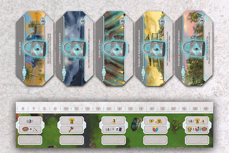 Das Modul „Weltwunder“ macht das Spiel variabler, indem es einen neuen Gebäudetyp einführt.