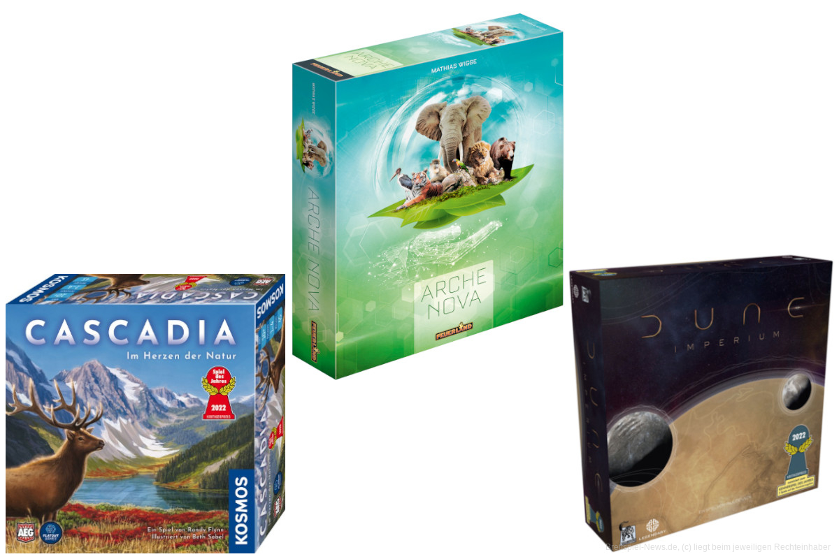Auf der Seite der SPIEL Messe wurden die Preisträger zum DEUTSCHEN SPIELE PREIS 2022 bekannt gegeben. Die meisten Stimmen bekam das komplexe Spiel "Arche Nova" von Autor Matthias Wigge. Der, bei Feuerland Spiele erschienene, Titel ist damit Gewinner des Hauptpreises und ist Träger des DEUTSCHEN SPIELE PREISES 2022. Das Spiel "Mit Quacks und Co nach Quedlinburg" wurde mit dem DEUTSCHEN KINDERSPIEL PREIS 2022 prämiert.