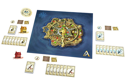 Ziel des Spiels: Zu Beginn wählt jeder Spieler den Gott aus, mit dem er das Spiel bestreiten möchte, sowie zwei Marker: Der erste gibt an, welchen Stadtteil der Spieler vor dem Untergang bewahren soll, der zweite gibt die Farbe der Häuser an, die er retten muss.Die Stadt Atlantis wird aus neun Teilen zusammengebaut. In jeder der acht Runden des Spiels geht einer der Stadtteile unter und mit ihm natürlich die Bewohner, die noch darauf verblieben sind. Am Ende des Spiels bleibt nur ein Stadtteil übrig.