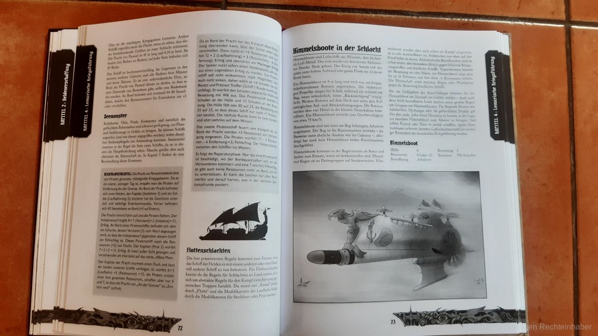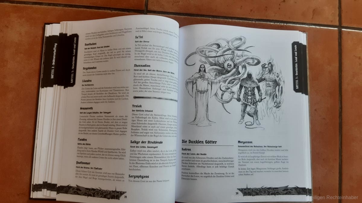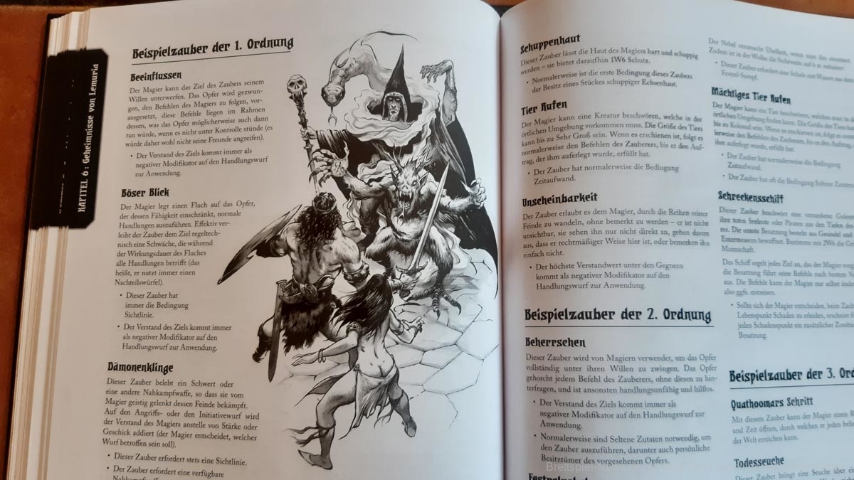 Die durchgehend in schwarz/weiß gehaltenen Illustrationen im Buch sind sehr stimmungsvoll, jedoch von unterschiedlicher Qualität. Die Karte Lemurias hätte ein kleines bisschen abwechslungsreicher sein können. Aber dafür gibt es bereits von Fans erstellte alternative Karten im Internet. Der einzige wirkliche Kritikpunkt ist, meines Erachtens nach, der Aufbau des Buchs. Ich muss viel vor und zurück blättern, was vor allem bei der Charaktererschaffung lästig ist. Hier sollte das Layout in künftigen Editionen auf jeden Fall nochmal überarbeitet werden.
